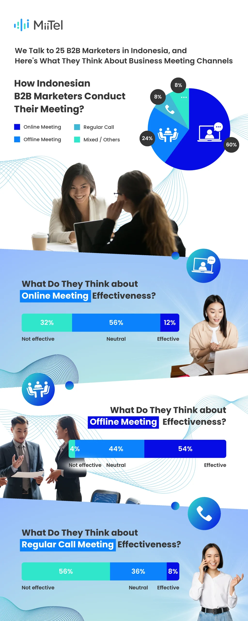 Di sisi lain, teknologi memiliki peluang besar untuk meningkatkan efektivitas saluran online. Solusi seperti MiiTel Meetings dapat membantu mengoptimalkan komunikasi virtual agar mendekati dampak dari pertemuan tatap muka. Sebab, masa depan komunikasi B2B adalah kombinasi antara efisiensi teknologi dan sentuhan personal dari interaksi langsung.