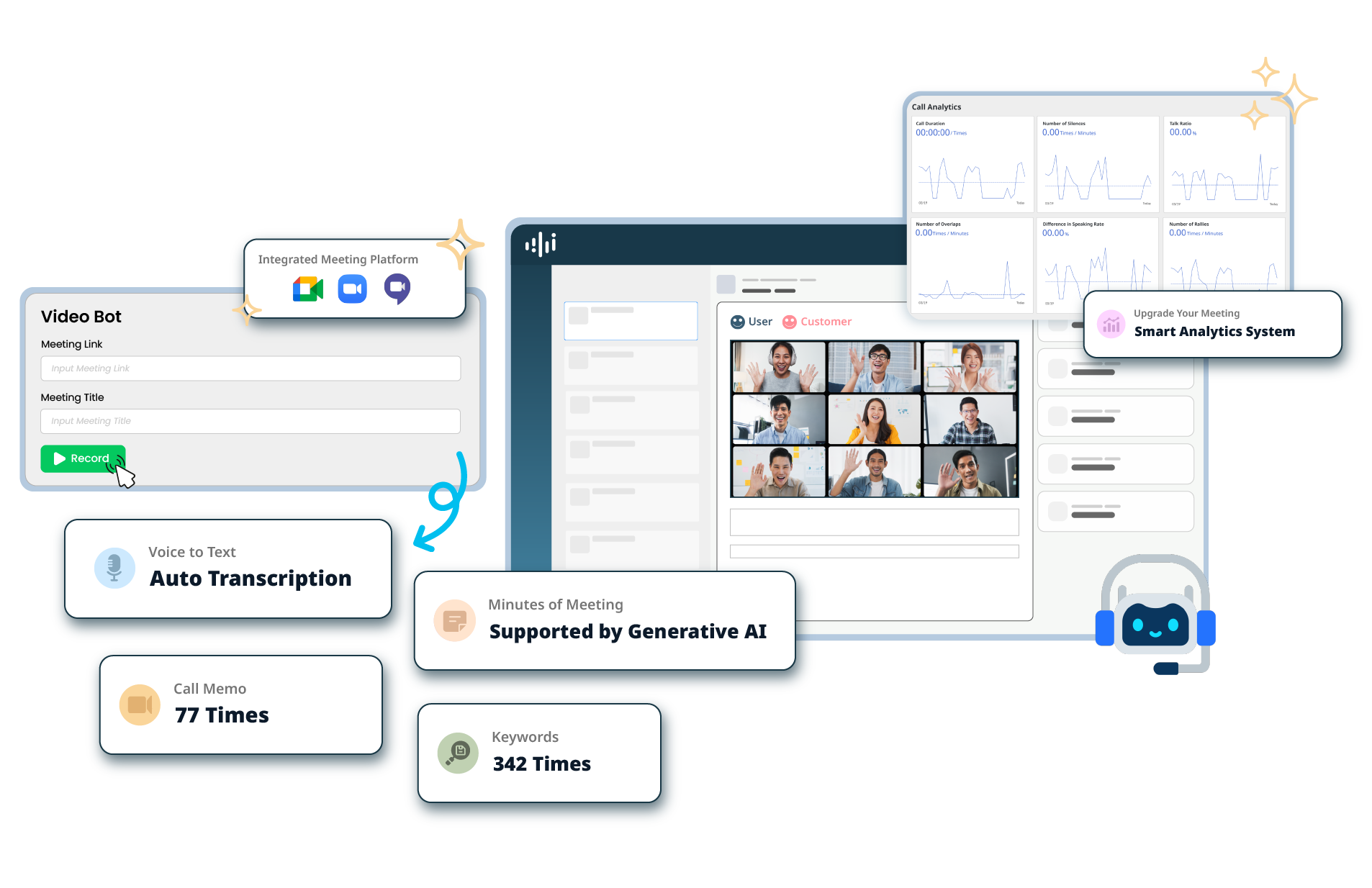 Dapatkan recording, transkripsi, rangkuman, serta analisis percakapan dari setiap sales meeting Anda.